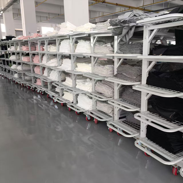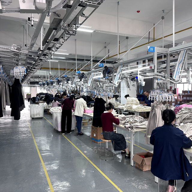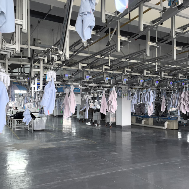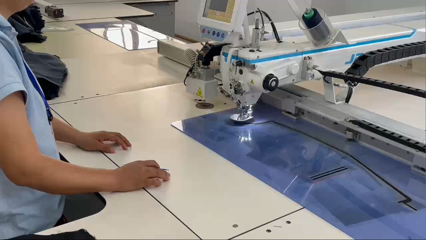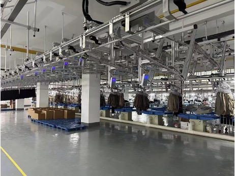 Our Factory utilizes intelligent manufacturing technology and equipment from Jack Corporation, with facilities including an intelligent raw material warehouse, automatic fabric spreading/cutting machines, hanging sewing machines (equipped with template machines), and an intelligent storage center、AGV、MES system、 digital room, etc.